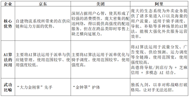 表2 京东、美团、阿里的核心优势以及AI算法在其中的作用
