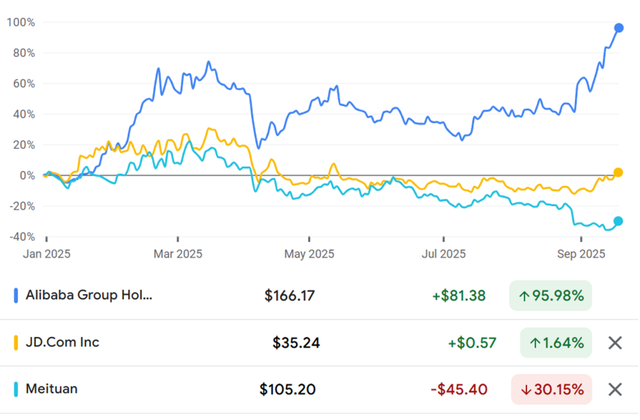 1 京东、美团、阿里自今年开战以来股价波动情况