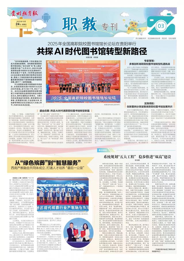 《贵州教育报》10月24日A03版“近年来智能检索、个性化服务正在成为读者的新期待。如何推动高职院校图书馆实现从‘知识仓库’向‘育人高地’的转型升级?...