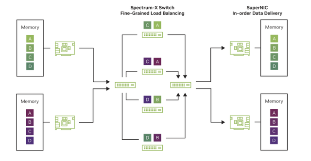 VIDIA Spectrum-X 以太网自适应路由实现图示(来源:英伟达)