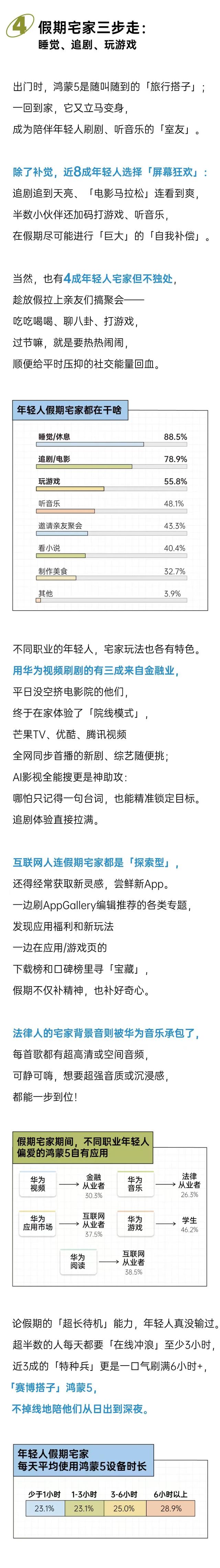 从尝鲜到偏爱,从玩转到共建,鸿蒙5不仅拓展了年轻人数字生活的边界,也让年轻人的科技视野变得更加广阔。在用户、伙伴、开发者的共同助力下,鸿蒙生态仍将高速发展,在不远的将来,为大家构筑一个大有不同的数字新世界。